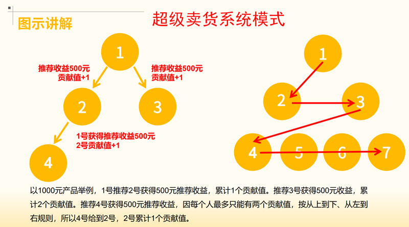 例如,推\荐一人购买 1000 元的产品,推\荐一个人可获得 500 元奖励;推\荐两人则奖励至 1000 元,相当于免费获得所购产品。